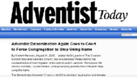 "La Denominacion Adventista va Nuevamente a la Corte para prohibirle a una Congregacion el uso del Nombre". (Revista Adventista)
