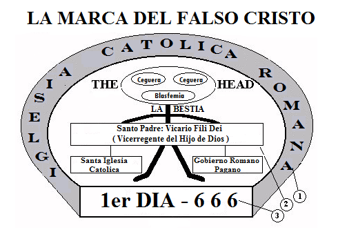La marca del "falso cristo" es la marca del "anticristo." El Papado, o la combinacion de la Santa Iglesia Catolica con el Gobierno Romano Pagano, es "la bestia" de Apocalipsis 13.